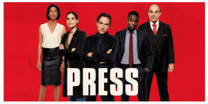 «Press» cuenta en su reparto con Ben Chaplin («Mad Dogs»), Charlotte Riley («Peaky Blinders»), Priyanga Burford («London Spy»), Paapa Essiedu («La casa de las miniaturas») y David Suchet («Poirot»), entre otros.