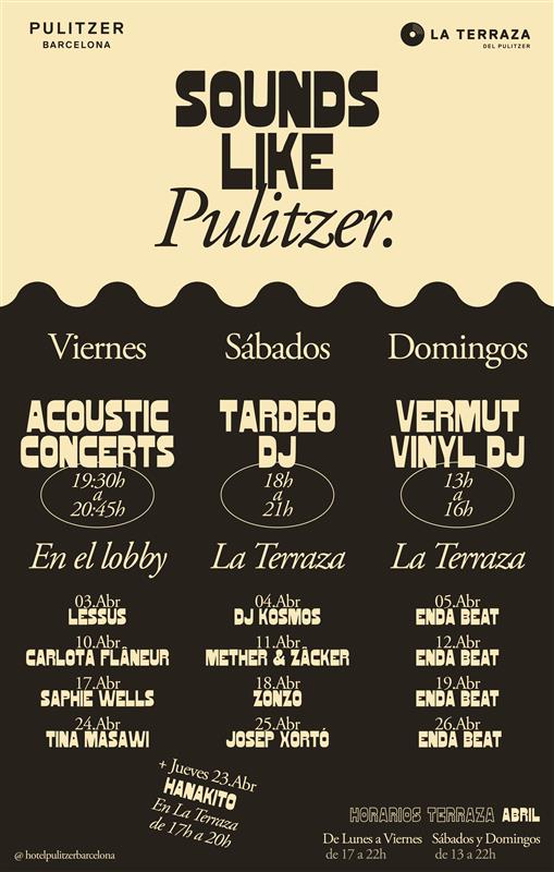 | El Hotel Pulitzer se prepara para recibir abril con su ya consolidado ciclo musical *Sounds Like Pulitzer* y una serie de propuestas , que incluye conciertos los viernes, sesiones relajadas con DJ los sábados, y vermuts al ritmo de vinilos los domingos. Este mes, además, llegan actuaciones destacadas y una cita especial el 23 de abril en honor a Sant Jordi, uno de los días más icónicos de Barcelona. Entre las novedades para Sant Jordi, el hotel prepara una experiencia sensorial para los amantes de la gastronomía y los cócteles. Su restaurante *The Greenhouse* ofrecerá un menú diseñado específicamente para esta fecha tan emblemática. Además, habrá un Spritz especial compuesto por cava rosado, Aperol, soda y fresas frescas, creado para brindar por este día tan especial. Ubicado en el corazón de Barcelona, en el número 8 de la calle Bergara, el Hotel Pulitzer se ha convertido en un oasis para quienes buscan una fusión perfecta entre música en directo, diseño exclusivo, cocina innovadora .Esta primavera, su ciclo *Sounds Like Pulitzer* conecta con la esencia barcelonesa a través de su programación que toma vida en dos espacios clave: el Lobby y la Terraza. Con cada fin de semana, el hotel invita a disfrutar de la ciudad desde una perspectiva diferente. El espacio está diseñado por Lázaro Rosa-Violán, el interior del Pulitzer es un escenario perfecto donde arte y modernidad se mezclan. Más allá de su famosa terraza, el hotel va activándose con propuestas musicales y experiencias únicas a medida que avanza la semana. ![]() Los viernes por la tarde dan inicio al recorrido sensorial con conciertos en el Lobby este espacio se convierte en un lugar íntimo para disfrutar música en directo desde las 19:30 hasta las 20:45 horas. La programación para abril ha sido cuidadosamente seleccionada. Después de abrir el mes con Lessus, el viernes 17 será el turno de Saphie Wells, reconocida cantante y compositora cuyas melodías oscilan entre el jazz, el folk y la intimidad lírica. Para cerrar el mes, Tina Masawi se presentará el viernes 24 con su espectacular voz y su pasión por el soul y el jazz contemporáneo. Cuando llega el sábado en la la sexta planta donde la Terraza del Pulitzer se convierte en un rincón urbano .Sus sesiones *tardeo*, que van de 18h a 21h, invitan a compartir buena música en compañía .Este sábado 18 de abril hará su debut Zonzo con sus sets eclécticos y llenos de creatividad desenfadada. Para despedir abril con broche de oro, Josep Xortó tomará las riendas el día 25 con su estilo único. ![]() Los domingos son ya una tradición en el Pulitzer con su famoso vermut musical al mediodía. Desde las 13h hasta las 16h, la magia del vinilo toma protagonismo gracias a Enda Beat, uno de los selectores residentes. Sabores del mundo que armonizan con la propuesta musical Esta experiencia sensorial se complementa con una innovadora oferta gastronómica que refleja la misma esencia cosmopolita de quienes la disfrutan. En La Terraza del Pulitzer, encontrarás una cuidada selección de street food sofisticado con influencia de distintas cocinas mediterráneas, perfecta para degustar al estilo informal sin sacrificar calidad. Entre las opciones estrella para acompañar al ritmo de la música destacan creaciones como brochetas de atún moruno con ensalada mediterránea, cordero servido sobre pan de pita acompañado de tzatziki, una hamburguesa a la brasa o falafel con un cremoso puré de calabaza. Además, los clásicos del tapeo se reinventan con propuestas únicas como croquetas de pollo moruno con alioli de ajo asado, y unas bravas con salsa piri-piri coronadas con alioli. Con la llegada de mayo, un mes que da inicio a la temporada estival con el regreso del ciclo #BuenasTardesPulitzer. Este evento, que se ha convertido en una cita imprescindible dentro de la agenda cultural de la ciudad, volverá de jueves a domingo, desde las 19:00 hasta las 22:00 horas, extendiéndose hasta finales de octubre con una programación renovada. La propuesta de este año se centrará en la música electrónica, liderada por un grupo de DJs locales, quienes ya son frecuentes en las cabinas más reconocidas de Barcelona. Con esta iniciativa, el Hotel Pulitzer reafirma su compromiso de ser mucho más que un espacio para descansar. Se consolida como un punto de convergencia donde diseño vanguardista, experiencias culinarias únicas y una oferta musical se unen para encapsular, día tras día, la esencia vibrante y cosmopolita de la ciudad. Sobre Pulitzer Hotels Establecido en 1967, Pulitzer Hotels es un grupo que se dedica a gestionar hoteles con carácter y esencia única en algunos de los destinos más emblemáticos y privilegiados de las principales ciudades de España y Europa. Sus alojamientos destacan por ser urbanos, y conectados con el ritmo, la cultura y las tradiciones locales. En la actualidad, el grupo opera los hoteles Pulitzer Barcelona, Hotel Regina y Pulitzer París, y se encuentra en plena expansión con la próxima apertura de dos exclusivos hoteles de cinco estrellas en Madrid y Roma. Cada uno de sus hoteles refleja la identidad única de la marca, basada en una conexión auténtica con el viajero, un profundo respeto por las comunidades locales, una cuidadosa selección de ubicaciones premium, la implementación de prácticas sostenibles y un ambiente cálido lleno de detalles. Estas cualidades posicionan a Pulitzer Hotels como uno de los grupos hoteleros más genuinos y distintivos del panorama actual. Hotel Pulitzer Ubicación: C/ Bergara, 8 (junto a Plaça Catalunya), 08002 Barcelona. Programación ‘Sounds Like Pulitzer’ (abril): Lobby: Viernes de 19:30h – 20:45h – conciertos acústicos. La Terraza: Sábados de 18:00h – 21:00h – Tardeo con DJ. La Terraza: Domingos de 13:00h – 16:00h – Vermut & DJ. Horario de apertura de La Terraza del Pulitzer: Abril: L-V de 17:00h a 22:00h | S-D de 13:00h a 22:00h Instagram: @hotelpulitzerbarcelon