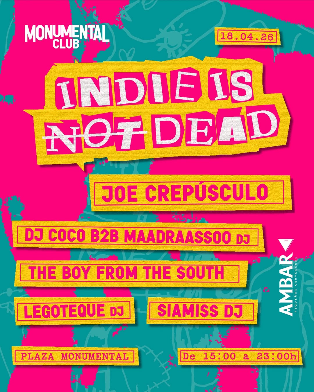 | Este sábado, Monumental Club retoma el espíritu de la música alternativa con **Indie is Not Dead**, un evento protagonizado por Joe Crepúsculo. La emblemática Plaza Monumental de Barcelona se transformará en el epicentro del indie-rock mediante una jornada repleta de música en vivo, sets de DJs destacados y una cuidada oferta gastronómica, en un híbrido perfecto de cultura y diversión al aire libre. La jornada comienza a las 12:00h con el espacio *Monumental Kids*, diseñado para toda la familia. Entre las actividades destacadas está el espectáculo *El Cuc Quàntic* de Reggae per Xics, una experiencia musical que mezcla ska, reggae y rocksteady en una narrativa educativa que transporta al público a épocas sin internet. También sobresale el DJ set de *Deloc & White*, expertos en crear ambientes animados con sus ritmos groovies, ideales para todas las edades. Pero el momento más esperado llegará con la actuación de *Joe Crepúsculo*, un referente del pop nacional conocido por su estilo desenfadado y energético que fusiona guitarras acústicas con bases de techno-pop en un ambiente festivo. A través de sus letras ácidas y su presencia en el escenario, promete convertir la plaza en un auténtico baile colectivo. ![]() Completarán la oferta musical un impresionante cartel de DJs que representan lo mejor de la escena indie. El tándem *DJ Coco b2b Maadraassoo* será uno de los platos fuertes, uniendo sus más de 25 años de experiencia en clubs míticos como Razzmatazz. También subirá a escena *The Boy From The South*, una propuesta que combina influencias británicas y mediterráneas con más de 8 millones de reproducciones en plataformas digitales. El gran repertorio continúa con *Legotheque*, conocido por sus eclécticas mezclas en sesiones icónicas como Crappy Tuesdays, y *Siamiss DJ*, una figura clave en el panorama barcelonés con una década de residencias en Razzmatazz. Además, la jornada ofrecerá una variada selección gastronómica a través de food trucks y talleres creativos enfocados en los más pequeños. Todo ello consolida a Monumental Club como un espacio para disfrutar de cultura, música y entretenimiento diurno. *Indie is Not Dead* es un evento: es un homenaje a la relevancia y longevidad del movimiento indie-rock, conectado al alma vibrante de Barcelona y a su pasión por la música en directo. Ya sea en compañía de amigos, pareja o familia, esta propuesta cultural promete ser el epicentro del ocio en la ciudad este 18 de abril. Qué: Monumental Club y Monumental Kids Cuándo: Monumental Club: 18 de abril de 15:00h a 23:00h Monumental Kids: 18 de abril de 12:00h a 17:00h Dónde: Plaza Monumental. Gran Via de les Corts Catalanes, 749 [Metro: Monumental] Entradas Monumental Club aquí Entradas Monumental Kids Instagram: @monumental.club @monumentalkids | |