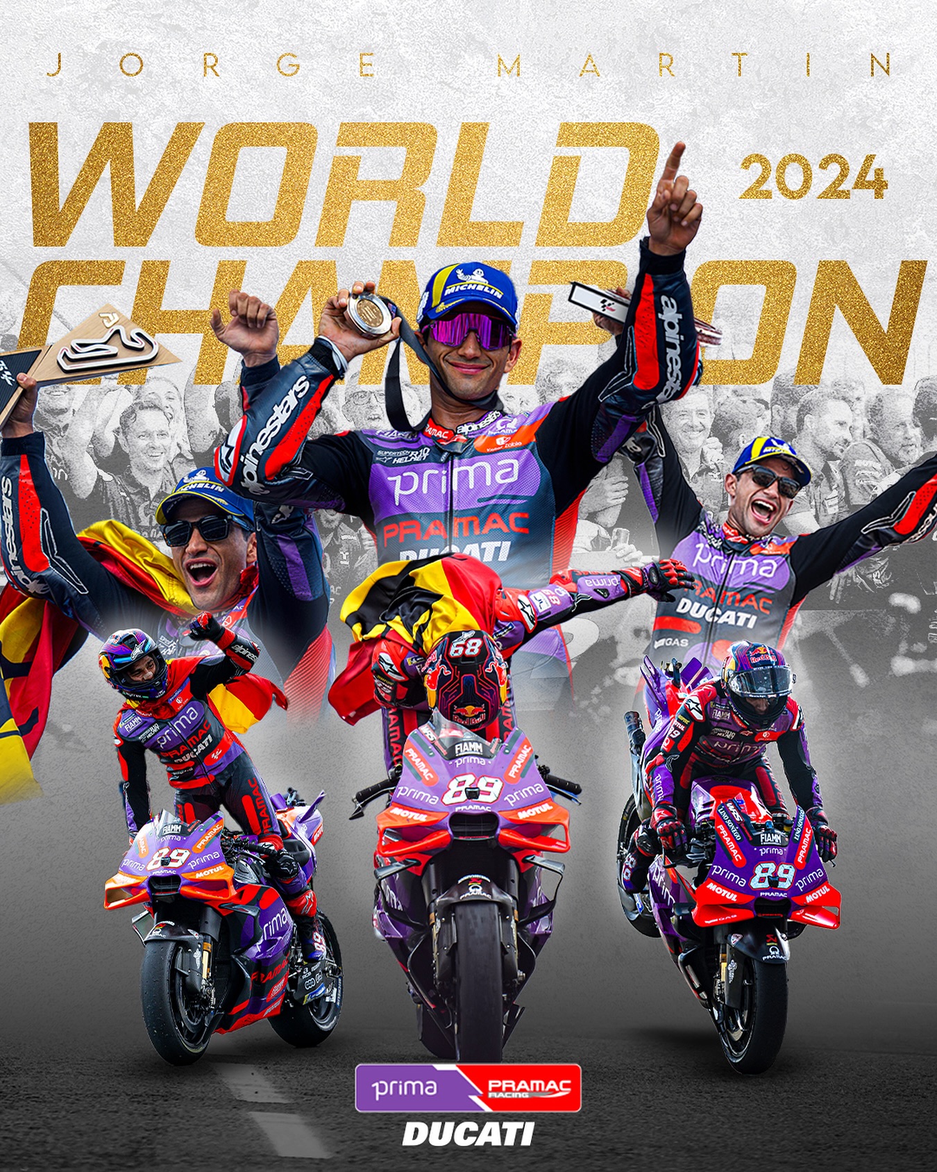 Jorge Martín, campeón del mundo de MotoGP 2024 El madrileño ha logrado el título hoy en Barcelona ![]() Todas las miradas estaban puestas en él. Era una carrera muy importante, una carrera que debía haberse celebrado en el Circuit Ricardo Tormo de Valencia pero, debido a la DANA que destrozó casi 70 municipios de la provincia y se llevó la vida de más de 200 personas, Barcelona Catalunya ha acogido la última prueba del Campeonato del Mundo de MotoGP 2024. ![]() Todo lo recaudado irá destinado a los afectados por la DANA y los pilotos se han mostrado muy implicados con la causa. En lo deportivo, a las victorias de David Alonso, en Moto3, y la de Arón Canet, en Moto2, se ha sumado la de Pecco Bagnaia en la máxima categoría. ![]() El tercer puesto de Jorge Martín, le ha dado el título más luchado de los últimos años. Martín, campeón con una lucha frenética con Bagnaia ![]() Cuatro años después de que Joan Mir lograra el título en MotoGP, Jorge Martín se lo ha llevado tras una temporada en la que lo ha dado todo y su batalla con Pecco Bagnaia, que defendía el antorchado logrado en el 2023, hace que la victoria sepa mejor. Jorge ha pasado por momentos difíciles a lo largo del año, sobre todo, cuando el equipo oficial ![]() Ducati eligió a Marc Márquez para que en 2025 fuera el compañero del italiano. A Martín, por orgullo, solo le valía ser campeón y hoy, haciendo una carrera muy inteligente y sin riesgos, lo ha conseguido. Jorge engrosa así el palmarés del motociclismo español que suma un nuevo título de MotoGP. ![]() | |