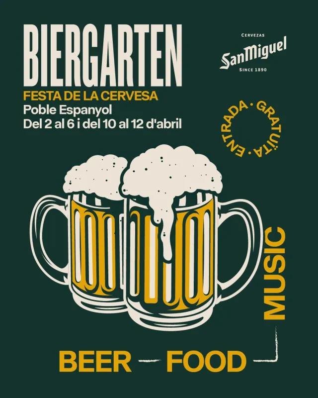 Amb l’arribada de la primavera i l’esperit festiu de Setmana Santa, Barcelona es vesteix de festa amb el retorn de la San Miguel Biergarten, la popular celebració de la cervesa al cor del Poble Espanyol. Aquest esdeveniment tant esperat per barcelonins i visitants tindrà lloc del 2 al 6 i del 10 al 12 d’abril, omplint de vida i bon ambient la majestuosa Plaça Major. La festa promet ser un punt de reunió per als amants de la cervesa, la gastronomia tradicional bavaresa i la música.