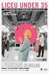 | l proper dijous 4 d’octubre el Gran Teatre del Liceu engega ‘Liceu under 35’, un nou projecte adreçat exclusivament a joves menors de 35 anys, que podran assistir a la preestrena de l’espectacle I puritani de Vincenzo Belliniadquirint qualsevol localitat del teatre a un preu únic de 15 euros. Una experiència musical integral que anirà molt més enllà de l’òpera i que començarà a les 19h amb un cocktail Bellini de benvinguda al Saló de Miralls i al Foyer, on també se situaran dues zones de food stands. En acabar l’òpera, la música continuarà al Foyer, on fins les 00h els espectadors podran seguir ballant al ritme del barceloní DJ Cucut.