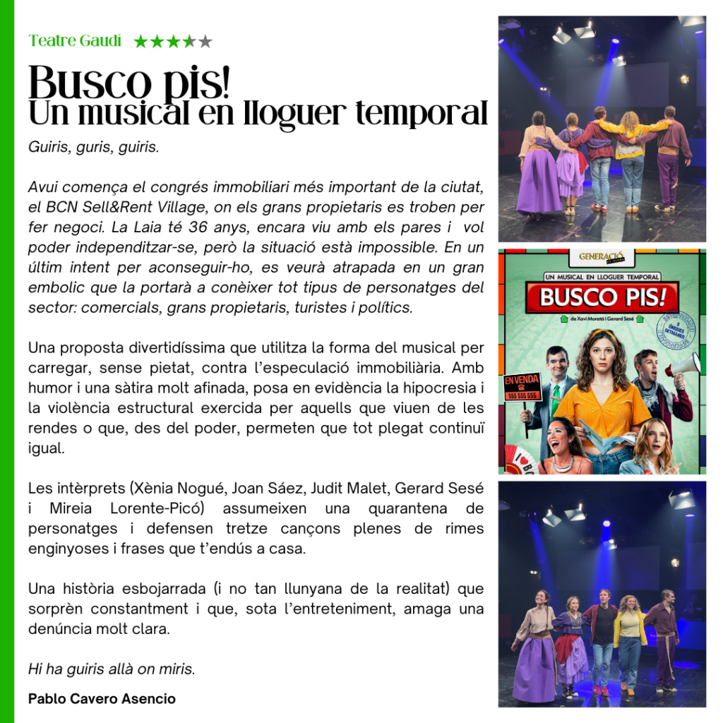 Ressenya de «Busco pis! Un musical en lloguer temporal» al Teatre Gaudí