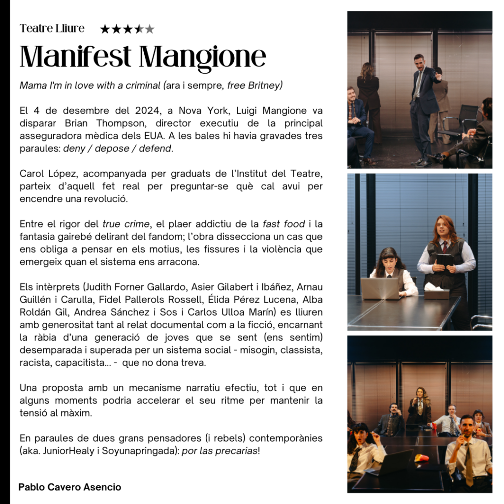 Ressenya de «Manifest Mangione» al Teatre Lliure