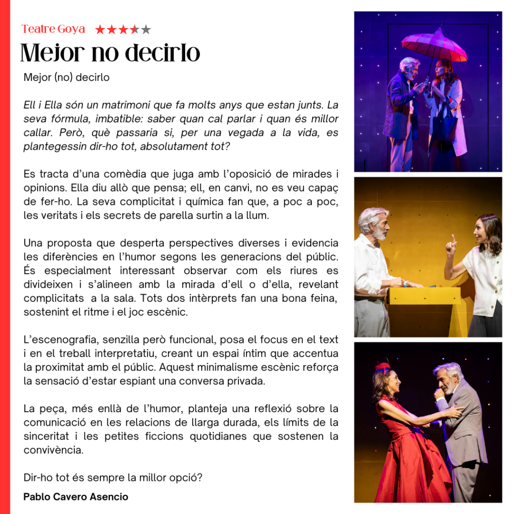 Ressenya de «Mejor no decirlo» al Teatre Goya