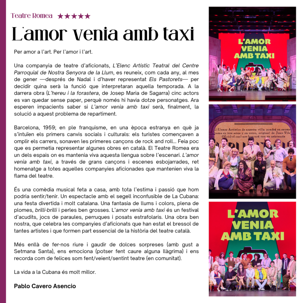 Ressenya «L’amor venia amb taxi» al Teatre Romea