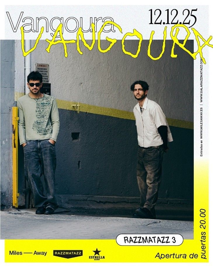 VANGOURA EN CONCIERTO 12 DE DICIEMBRE 2025 · RAZZMATAZZ 3 · BCN apertura de puertas: 20:00 H anticipadas: 15 € + gastos Vangoura llega a Barcelona para presentar su gira Nada Importa Tour. La cita será el próximo 12 de diciembre en la sala Razzmatazz 3. Las entradas están disponibles a través de salarazmatazz.com a un precio de 15 € + gastos en anticipado. Esta será una oportunidad única para disfrutar del directo de una de las bandas pop del momento. ![]() Vangoura es el dúo madrileño de indie pop formado por Miguel Figueras e Ignacio Alarcón, con un estilo a medio camino entre sonidos vanguardistas y las estructuras clásicas del pop. Tras lanzar sus primeros temas en 2020 y aprovechar la postpandemia para ir adelantando singles del que sería su primer álbum de estudio, ‘Mudar la piel’, se ganaron una plaza entre los 15 finalistas del Mad Cool Talent by vibra Mahou, además de abrir el show de Dani Fernández en el Wizink Center. El pasado 19 de abril publicaban su segundo LP, ‘Sangre y sal’ bajo la coproducción de Bearoid y Ganges, además de los propios Vangoura. Se trata de un conjunto de once canciones y un breve interludio ambiental de un corte nostálgico en el que las composiciones giran en torno a dos temáticas más espacio para las guitarras y para las influencias de últimos de los 90 y primeros de los 2000, y la voz de Miguel se abre a nuevos registros y efectos. Además, a diferencia de trabajos anteriores, la instrumentación es algo más cruda y con espacio para instrumentos acústicos, en busca de intimidad y sensibilidad. Cuenta con la colaboración de Besmaya en números rojos, un tema rotundo de pop de guitarras. | |